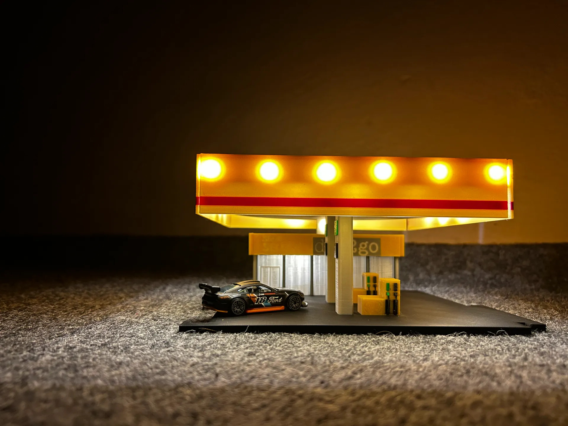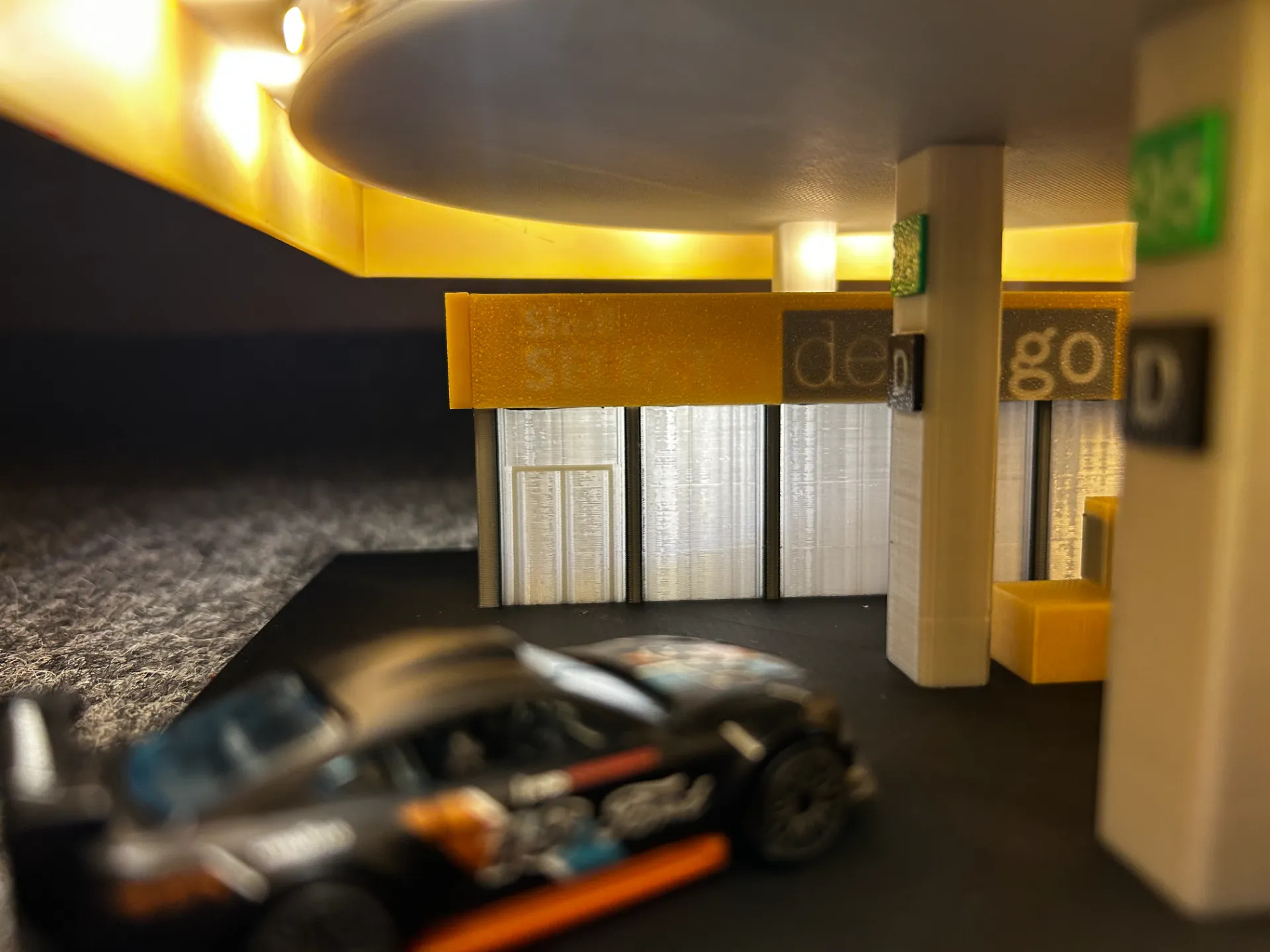 Čerpací stanice - žlutá pro Hot Wheels nebo Matchbox auta připojitelná k našim dalším modelům.